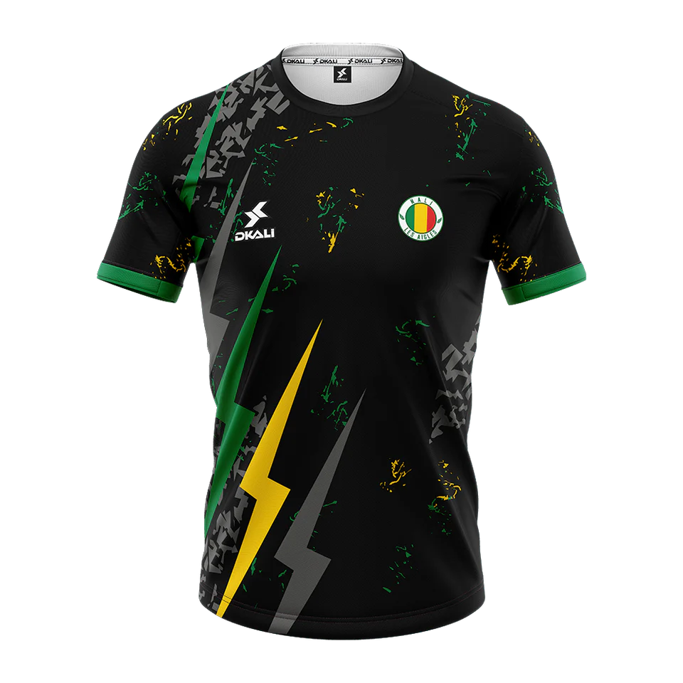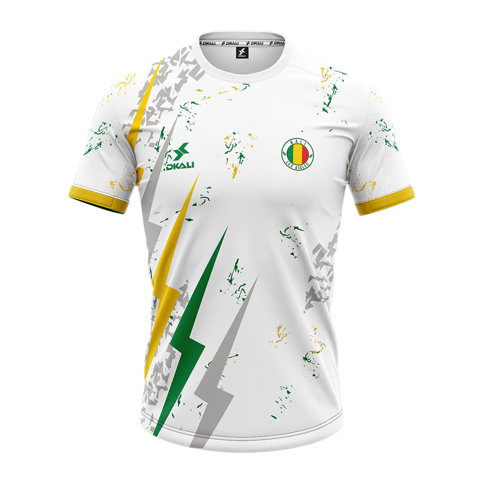 La collection du Mali signée Airness incarne la puissance des Aigles avec des designs inspirés des étoffes traditionnelles et une technologie pensée pour la performance. Le maillot domicile, en jaune éclatant, est traversé par une bande verte et rouge stylisée représentant l’aigle royal, emblème du pays. Le maillot extérieur, en blanc pur, est orné de motifs géométriques subtils qui rendent hommage à l’artisanat malien. L’édition spéciale noire, plus audacieuse, affiche une tête d’aigle brodée sur la poitrine, affirmant l’identité forte de l’équipe.