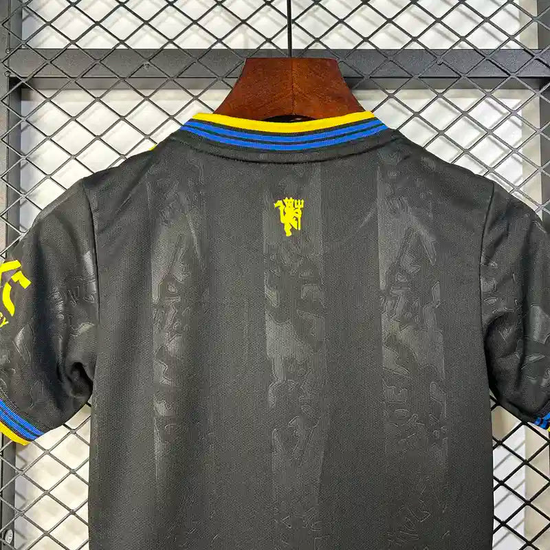 Ensemble enfant Manchester United 2025/2026 – Ensemble second éxtérieur (Noir avec Finitions Jaunes et Bleues)
